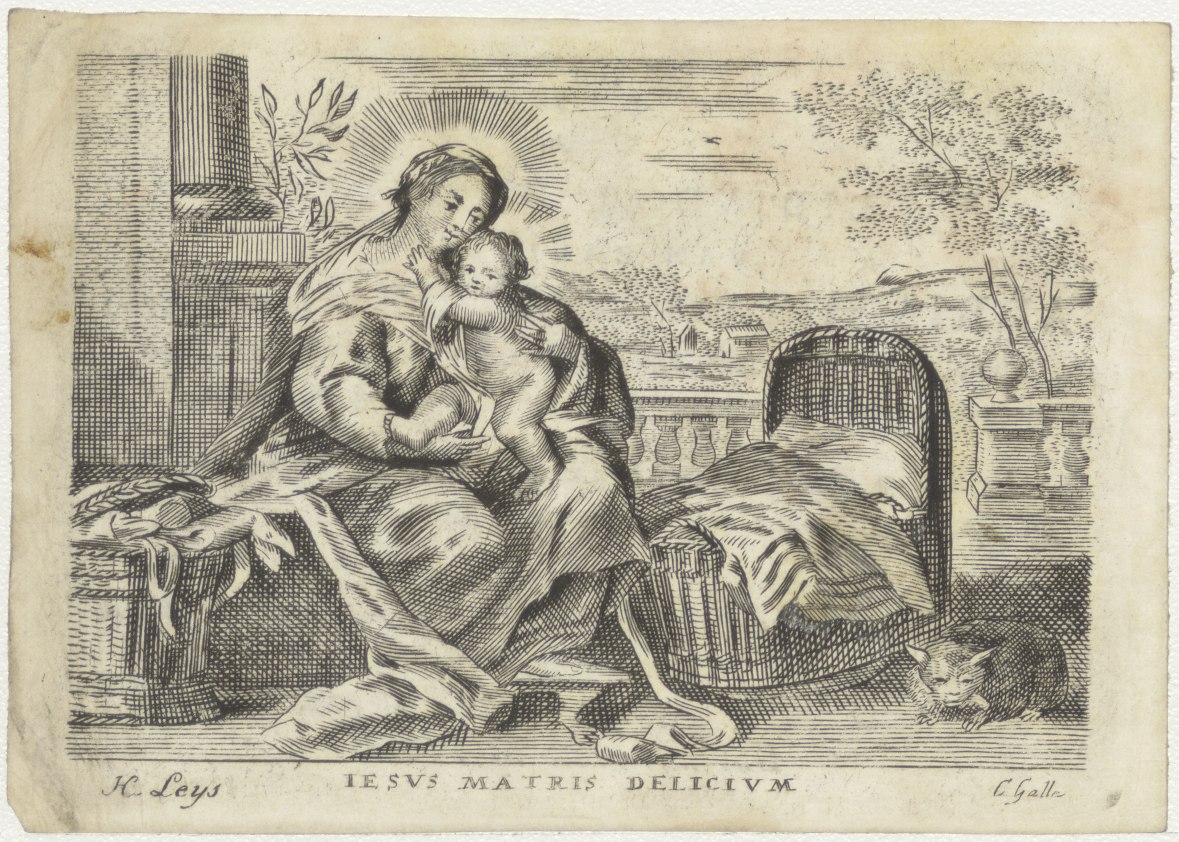 Maria met Christuskind, huiselijke scène, kz. Bid vo...