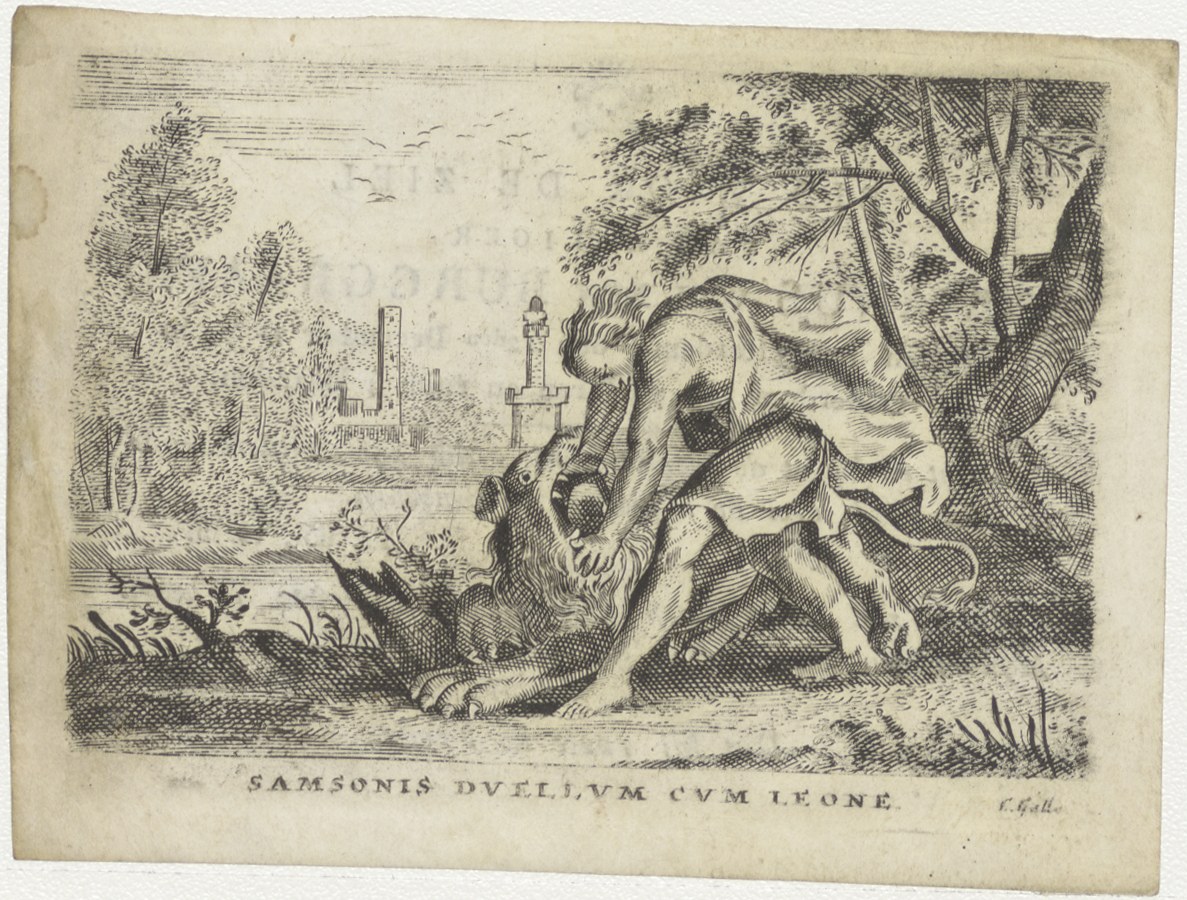Samson en de leeuw, kz. Bid voor ziel Van den Burggr...