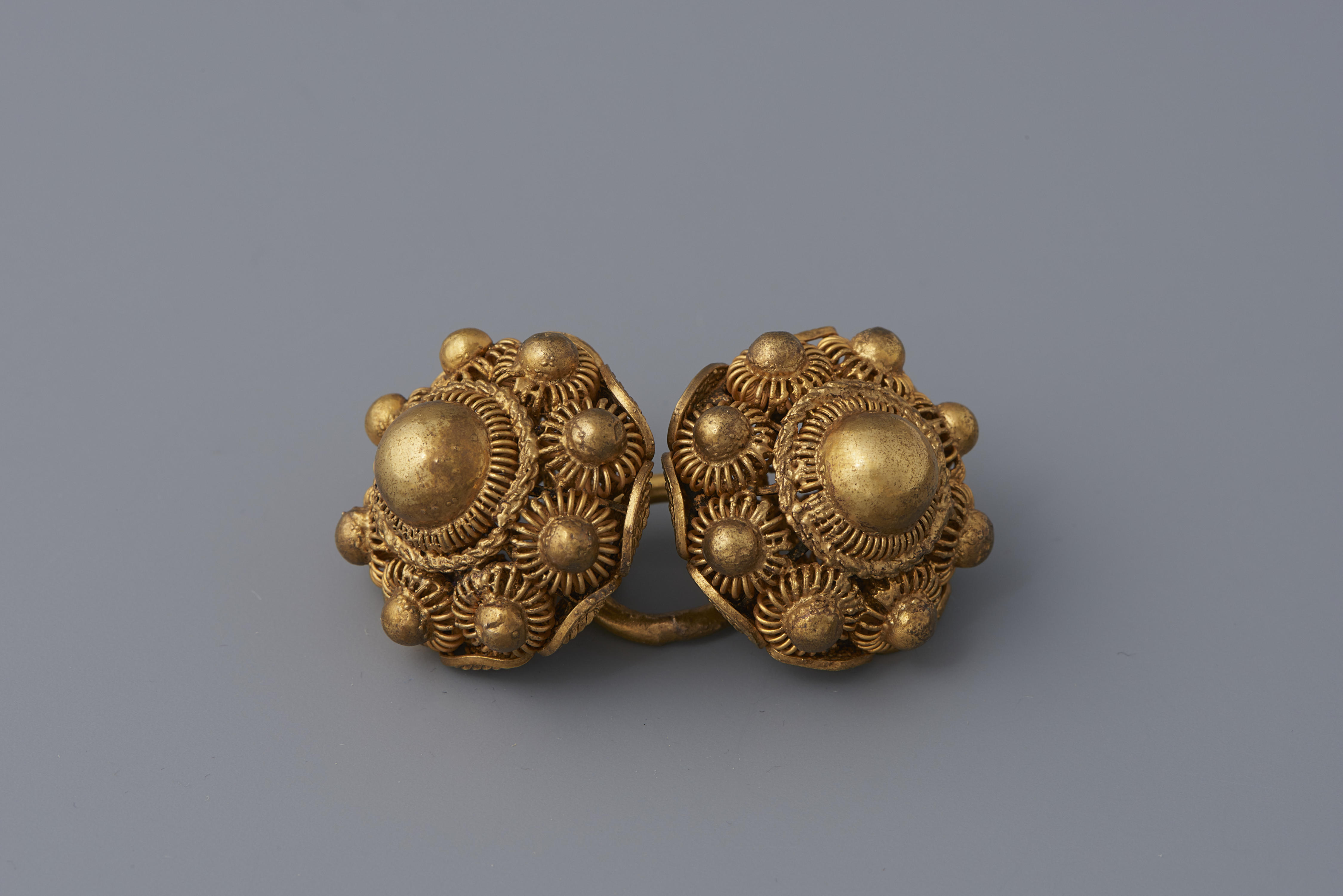 Vergulde messing keelknopen, Walcheren, circa 1900