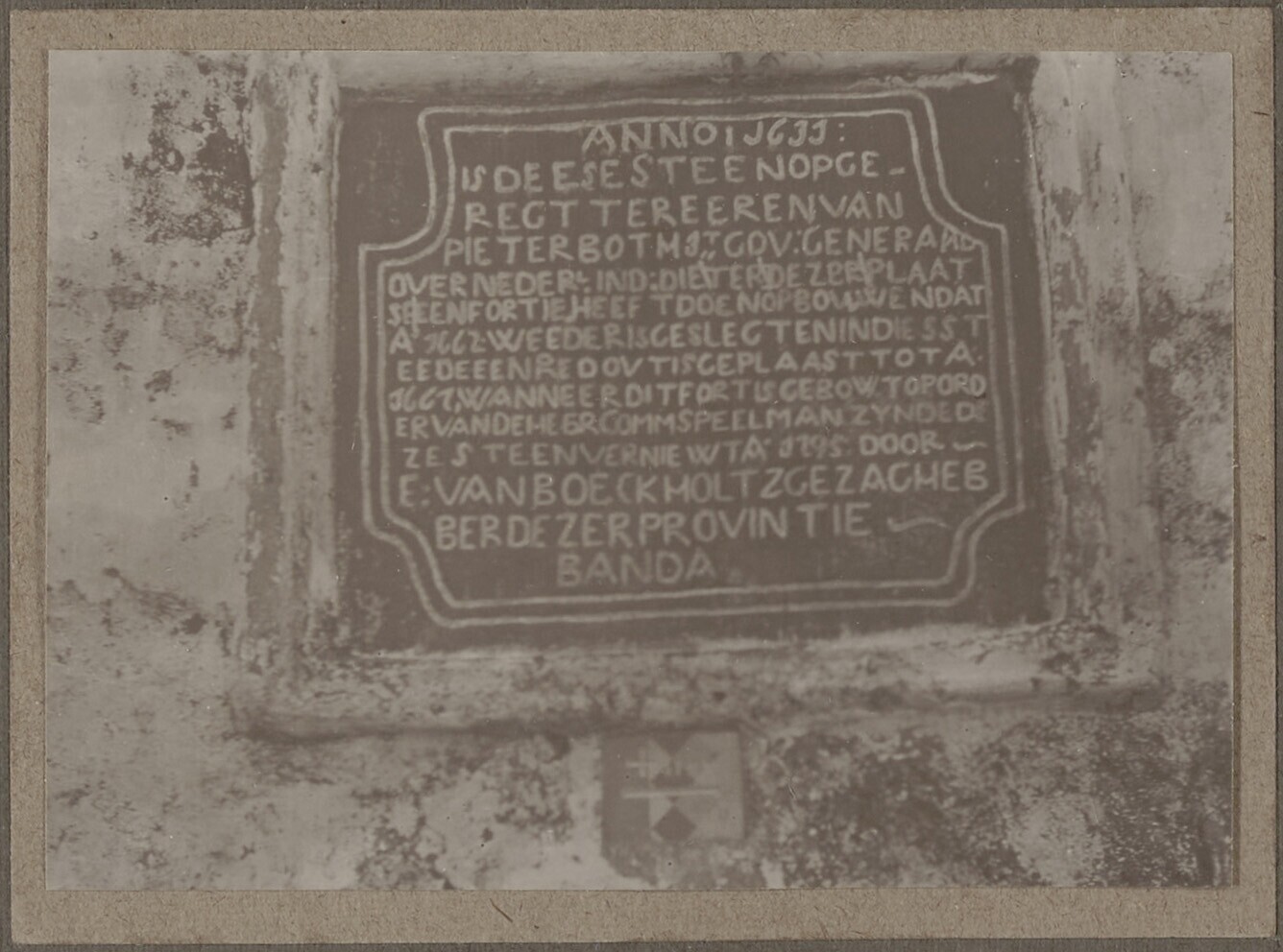 Een gedenksteen uit 1633 bij het VOC fort Belgica, o...