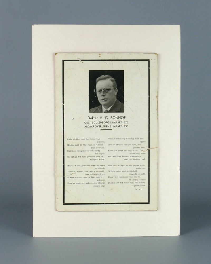 in memoriam geassocieerd met dokter H.C. Bonhof, Cul...