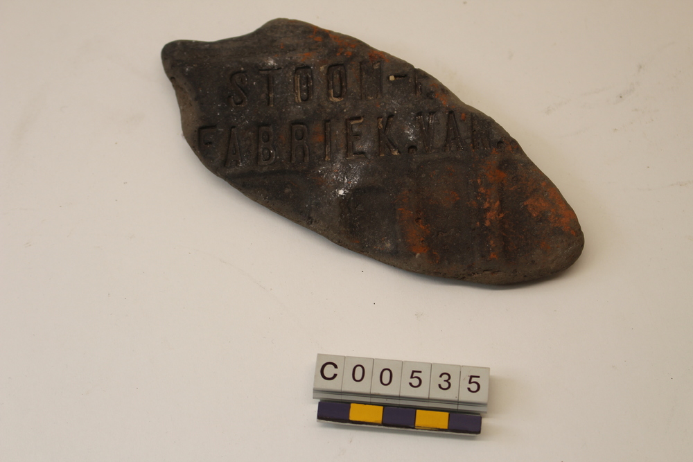 Deel van stenen plaat met opschrift Stoom- fabriek ....