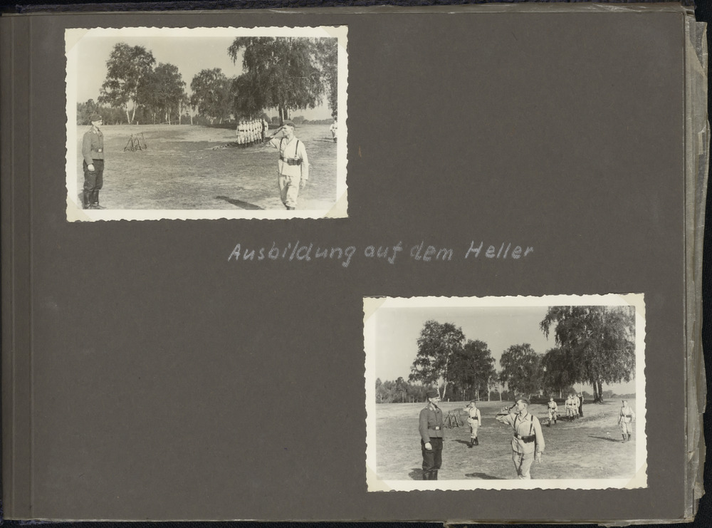 Militair salueert tijdens training. Tekst: "Ausbildu...
