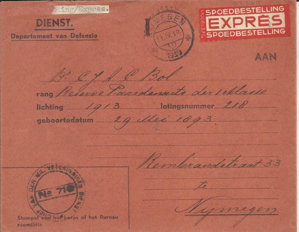aan Dhr J.W. van Veen te Voorschoten