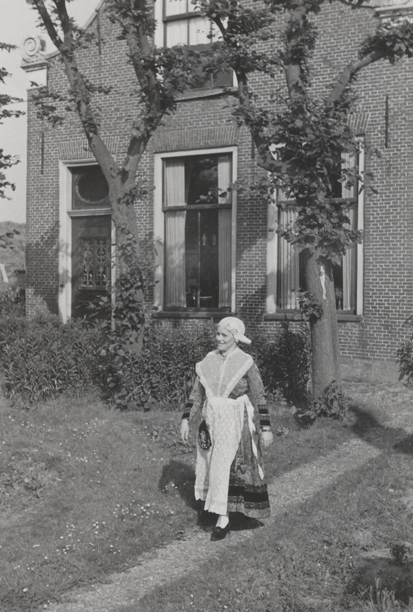 Vrouw uit Workum, verkleed in Friese dracht, 1944 (z...