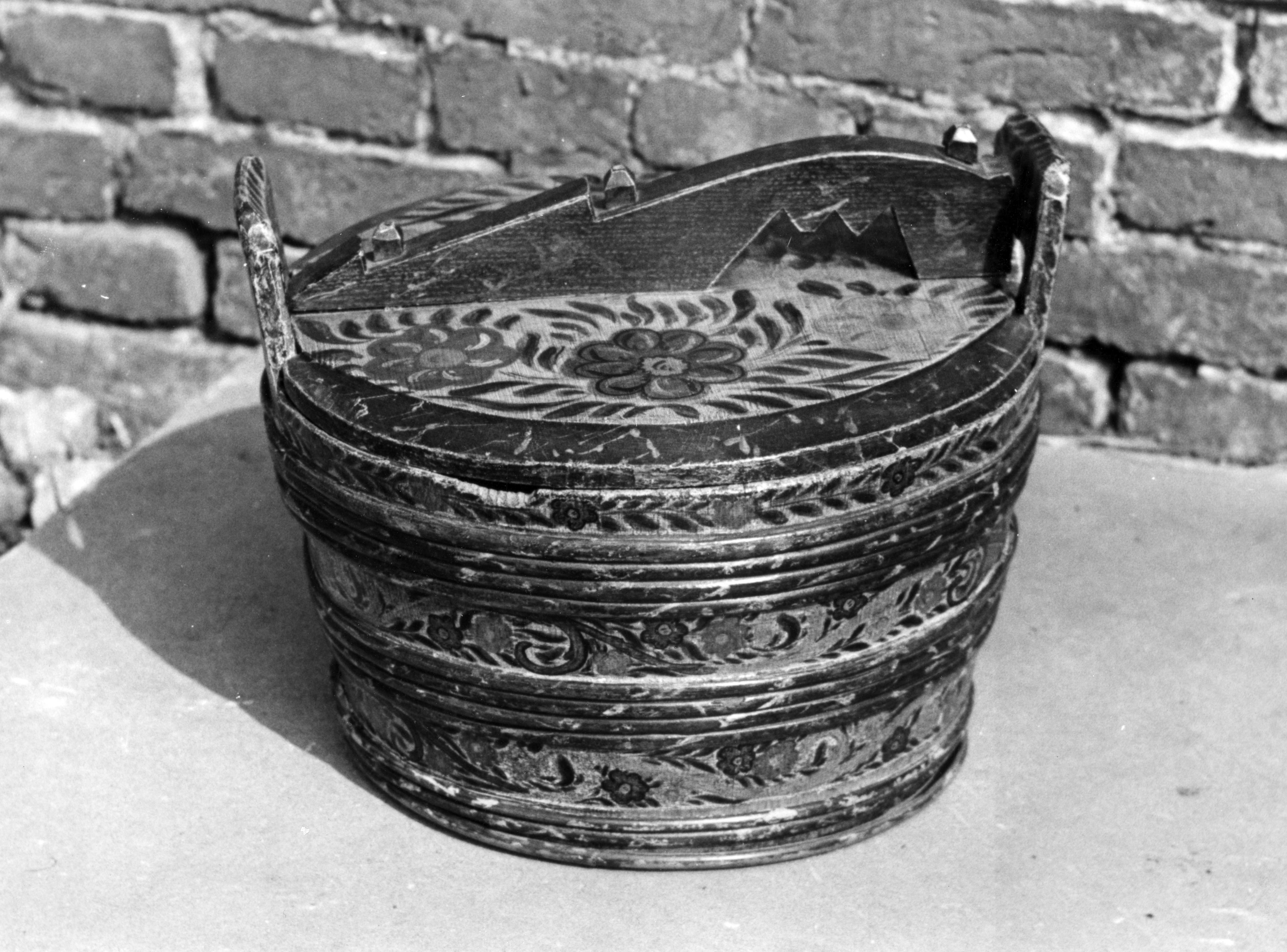 Beschilderd houten tonnetje uit Workum, 1944 (zwart-...