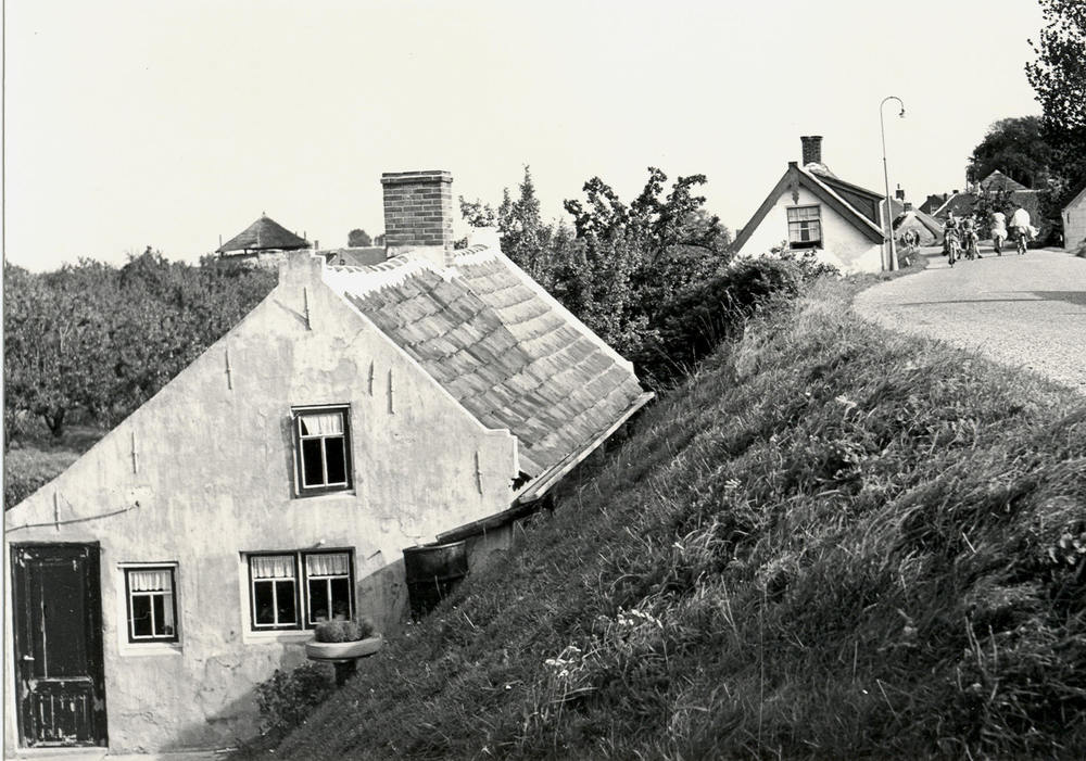 Zwart-wit foto van de kade te Tolkamer genomen vanui...