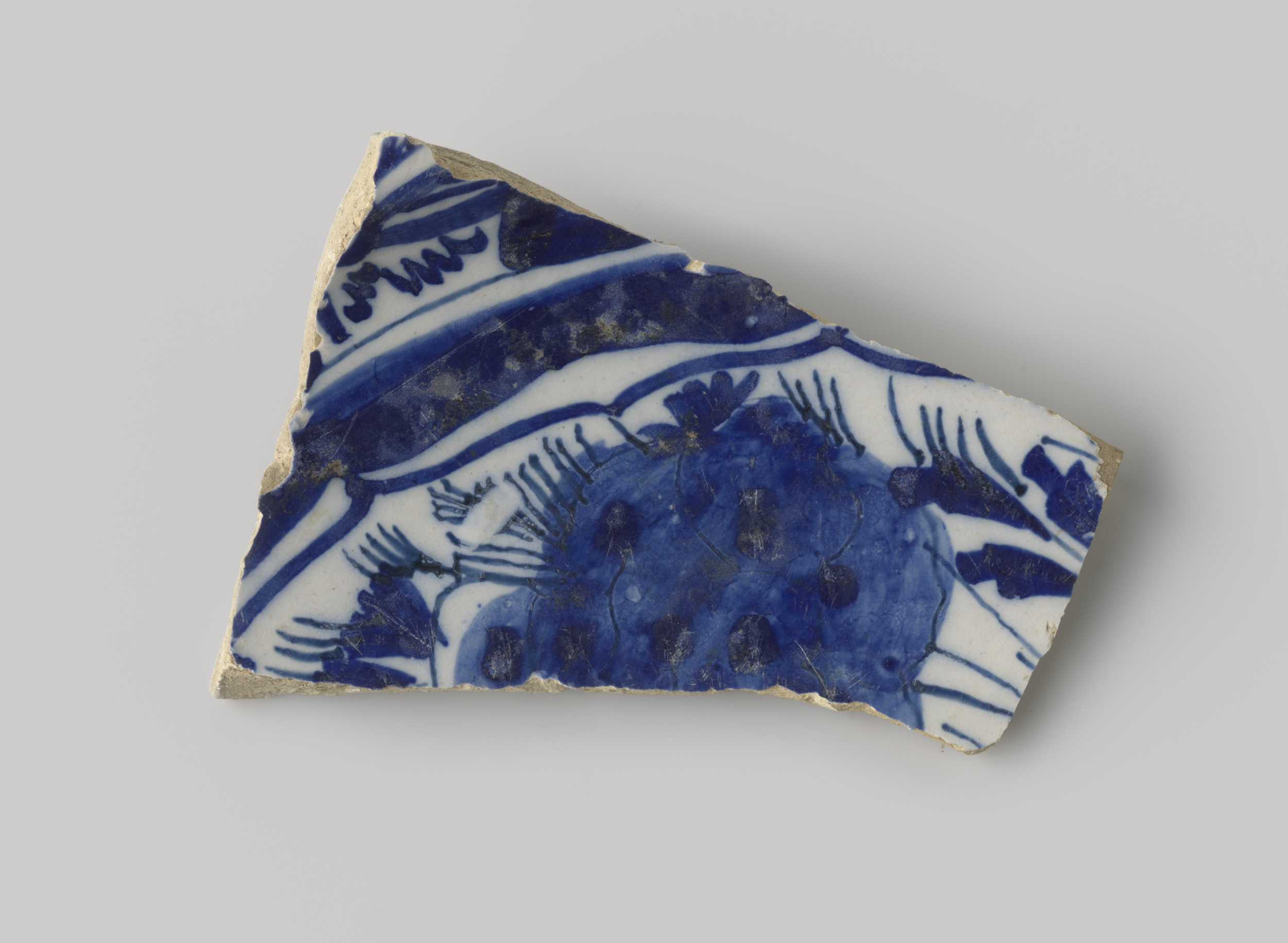 Scherf van een witbakkend aardewerk, met decoratie v...