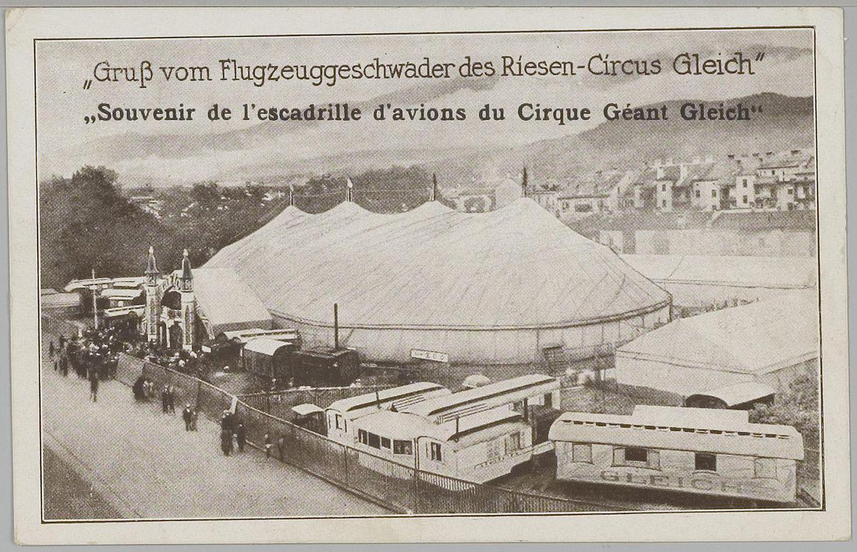 Gruss vom Flugzeuggeschwader des Riesen-Circus Gleich.
