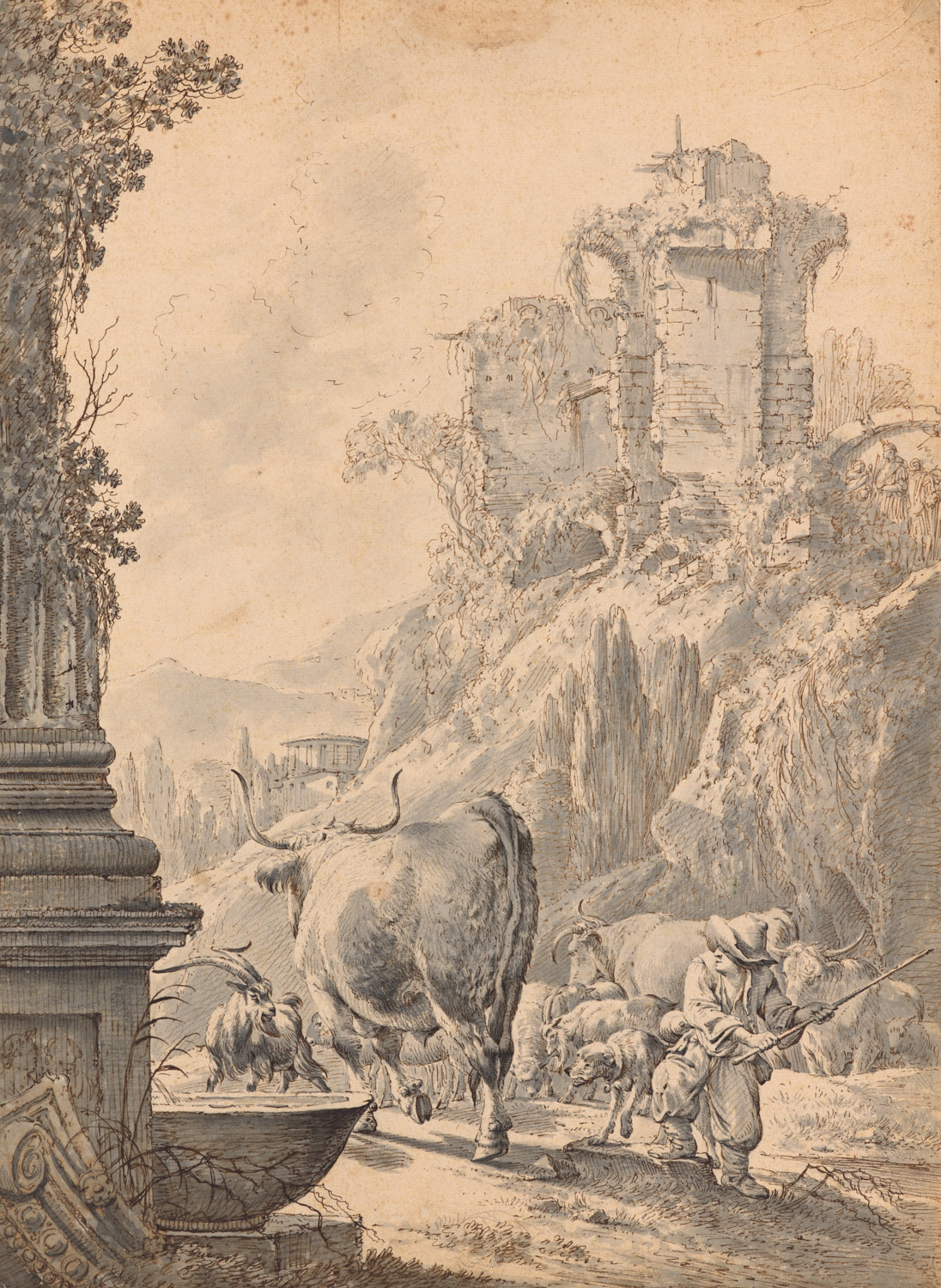 Een Italiaans landschap met rundvee