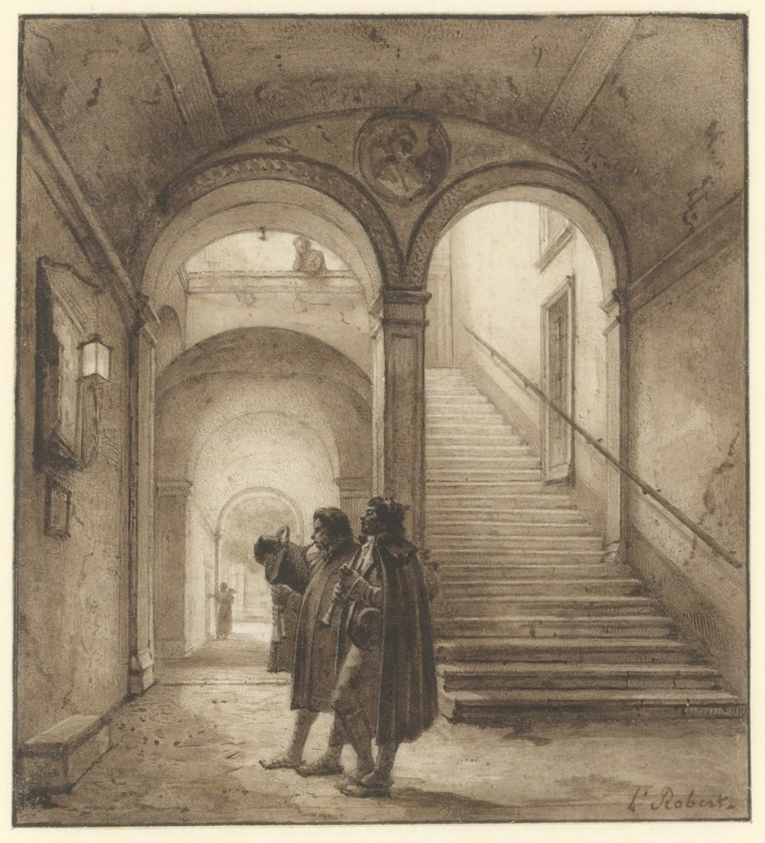 Twee italiaanse muzikanten in een gebouw