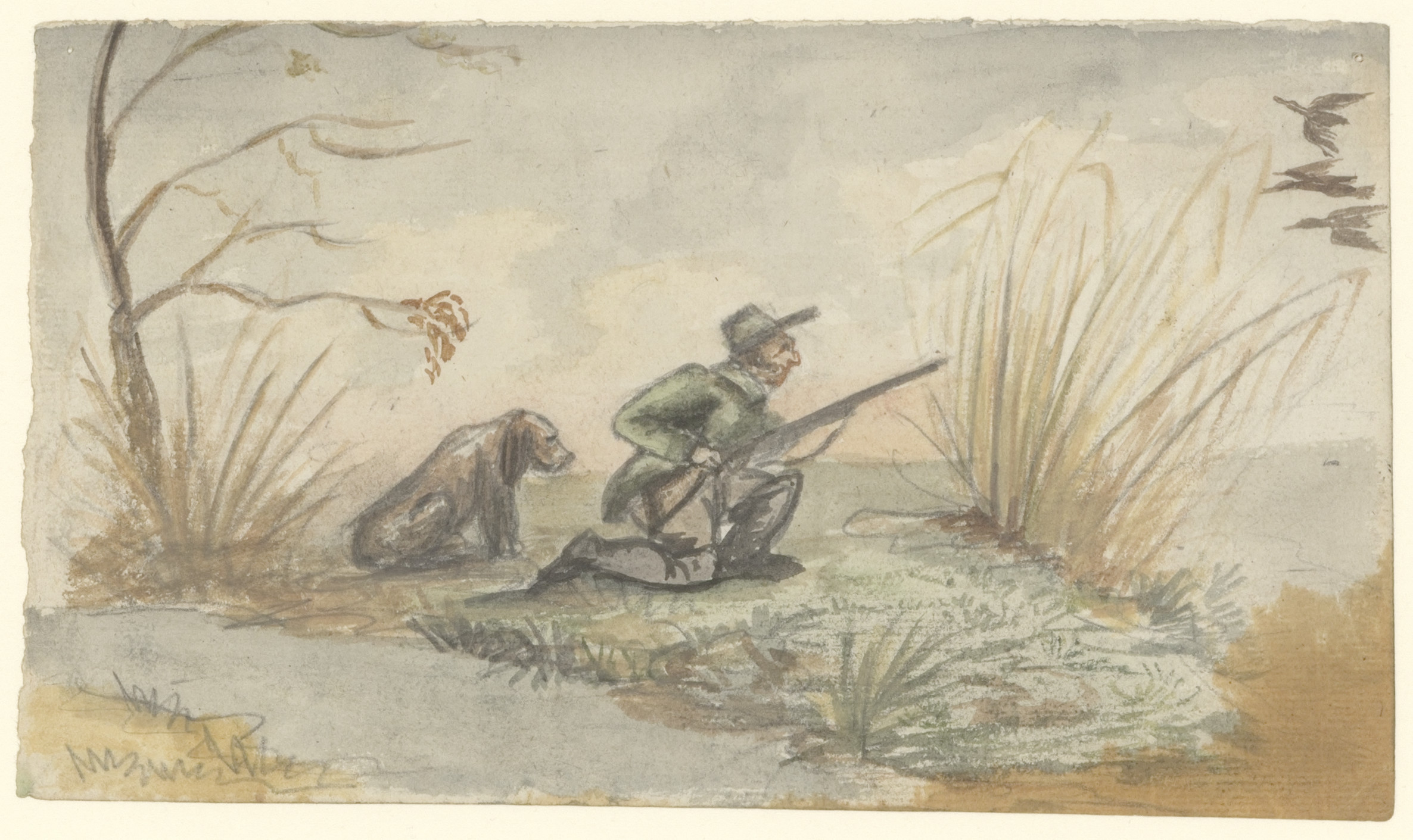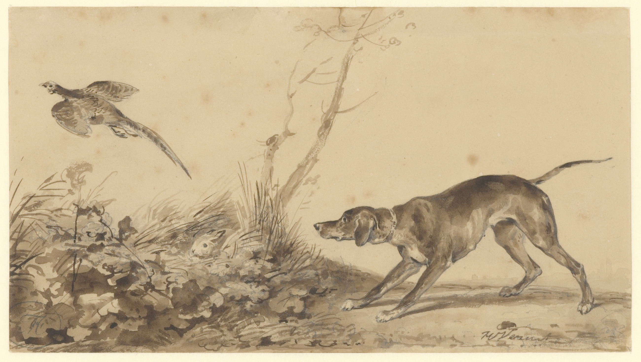 Een hond, eene faisant opjagende