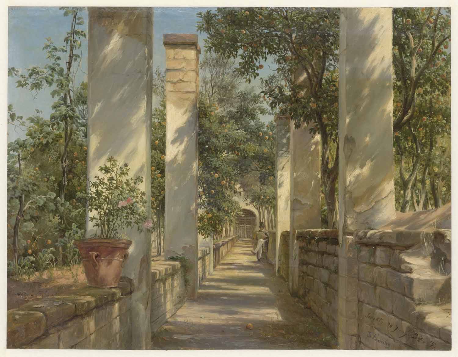 Eene kolonade in eenen Italiaanschen tuin