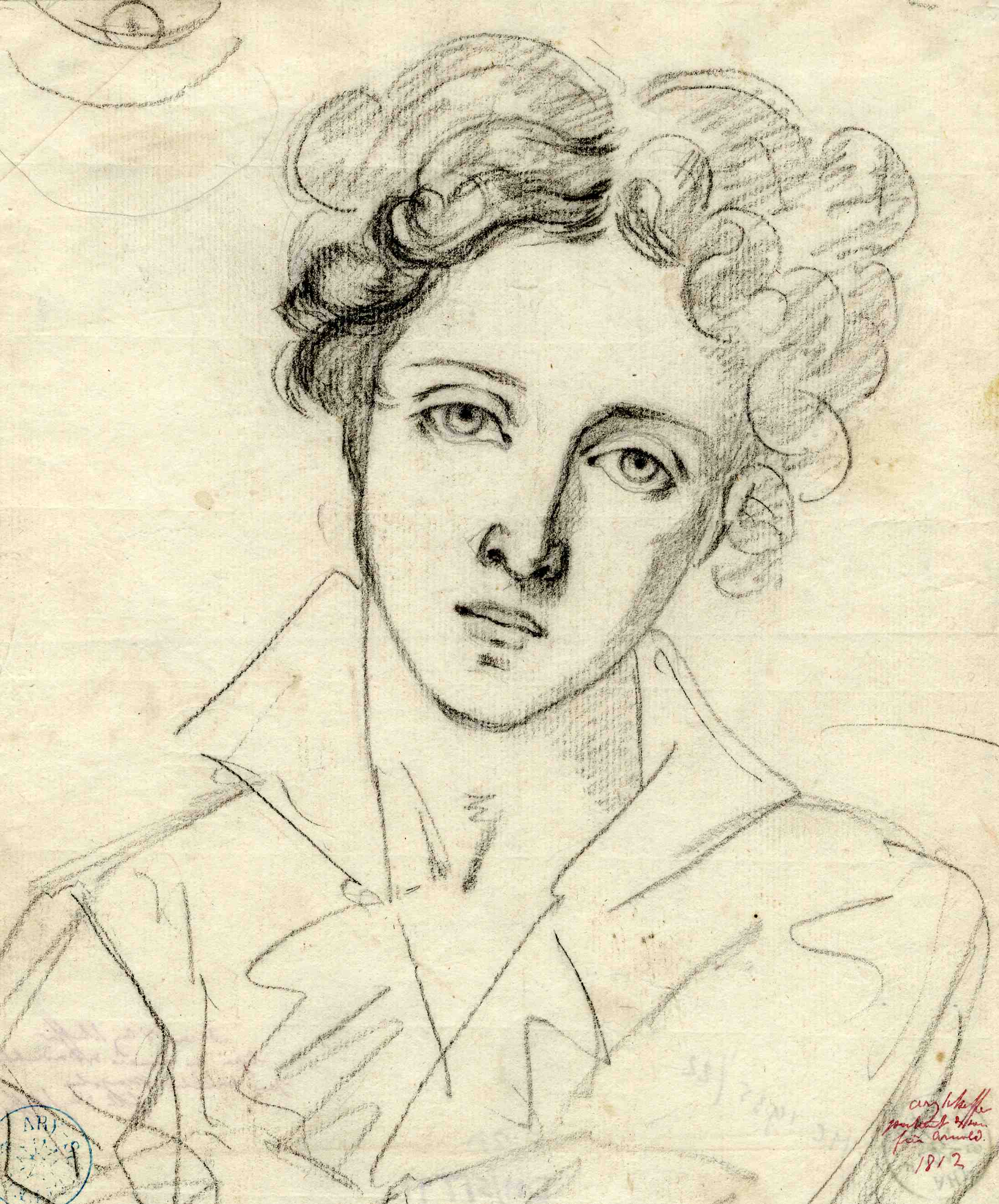 Portretstudie van Arnold Scheffer op 16-jarige leeftijd