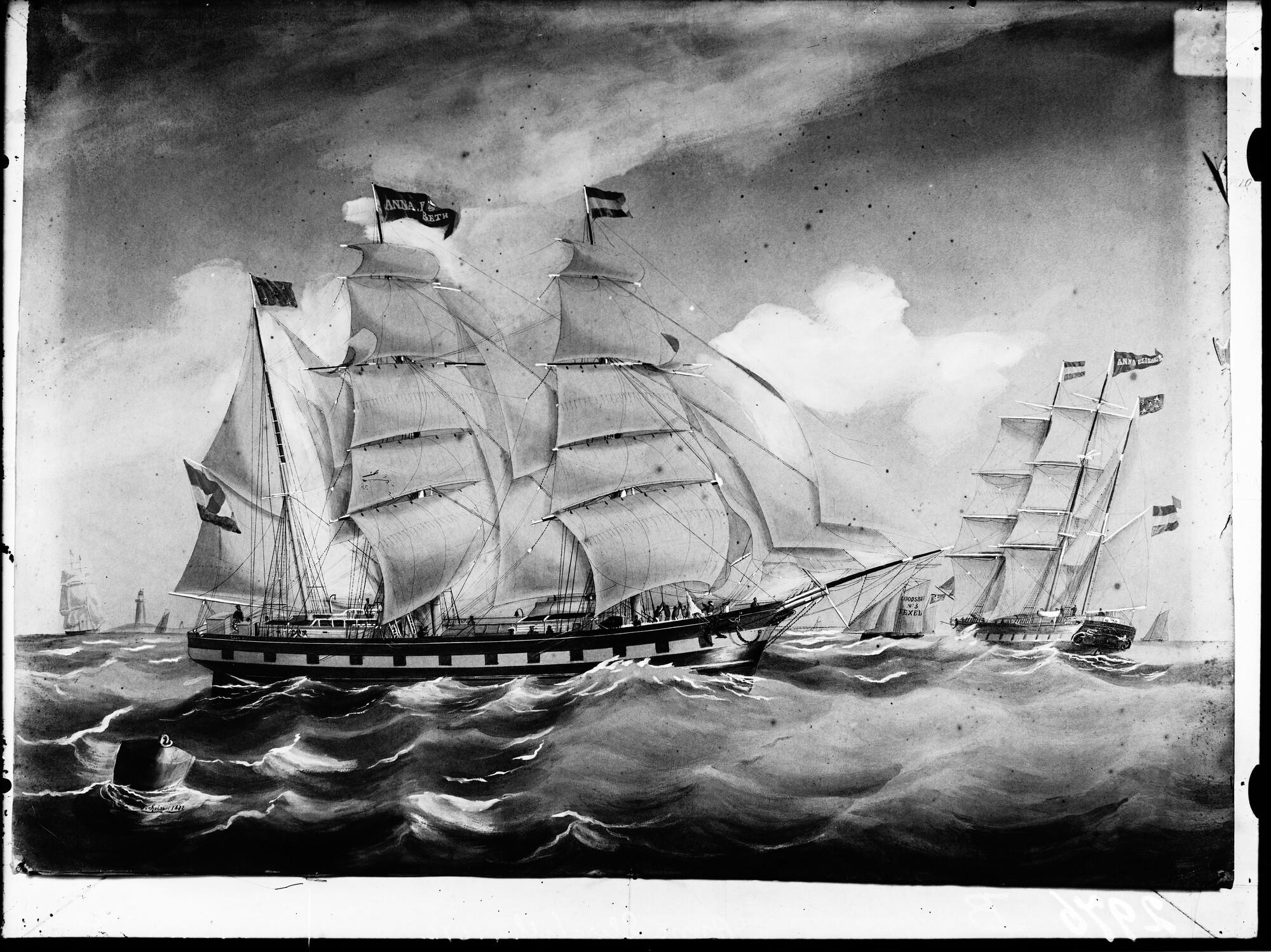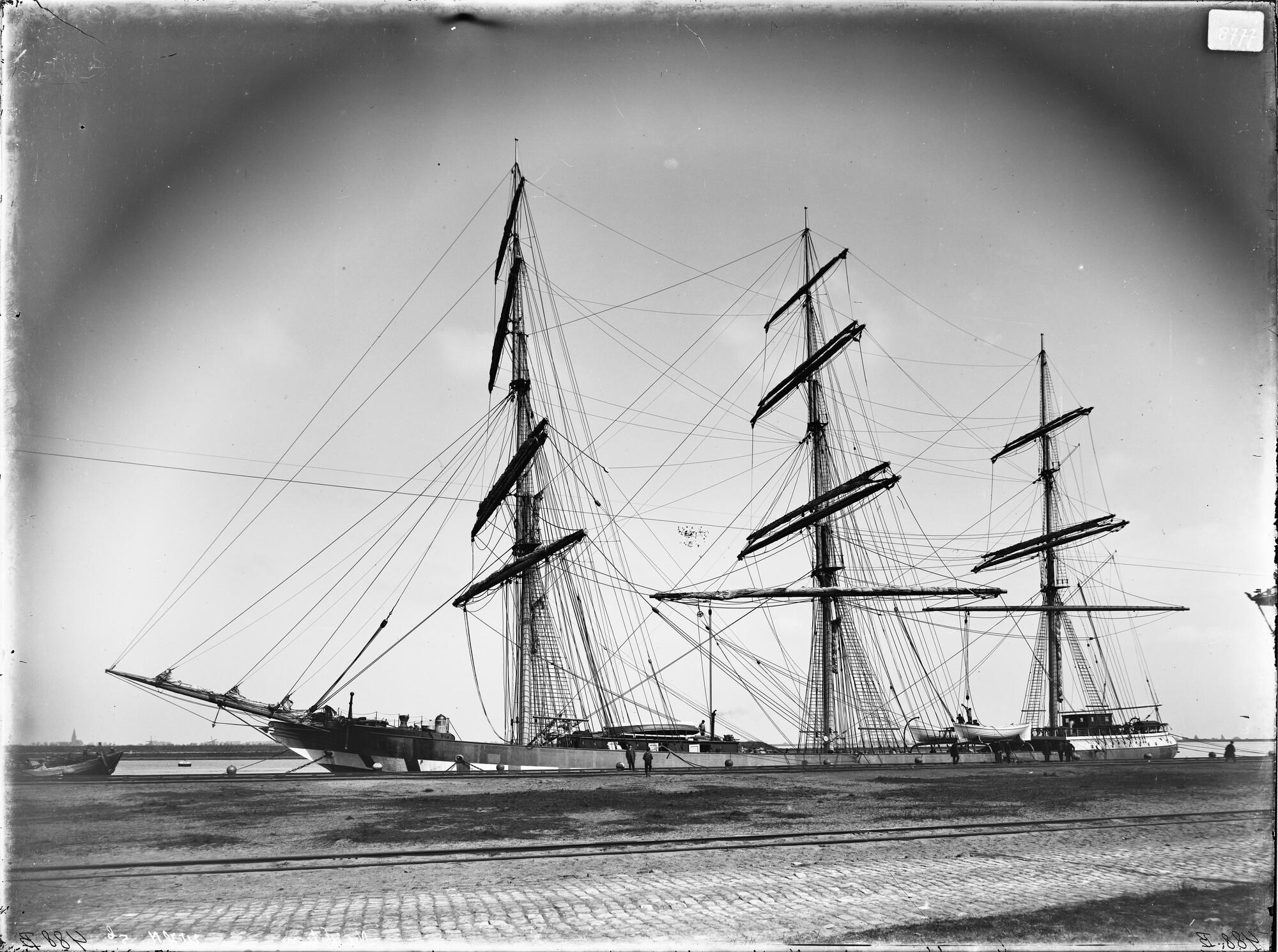 Negatief van het stalen barkschip Van Galen in aanbo...