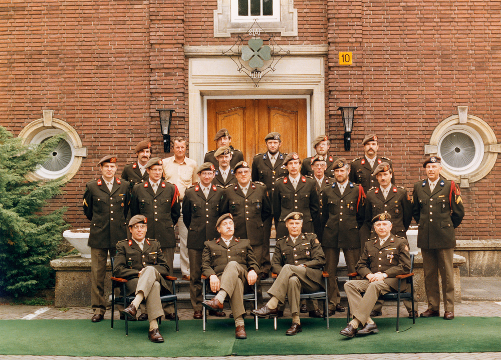 Groepsfoto staf 4 Divisie voor het stafgebouw op de ...