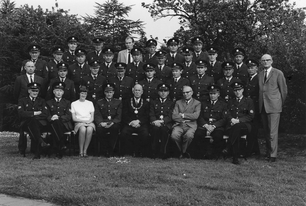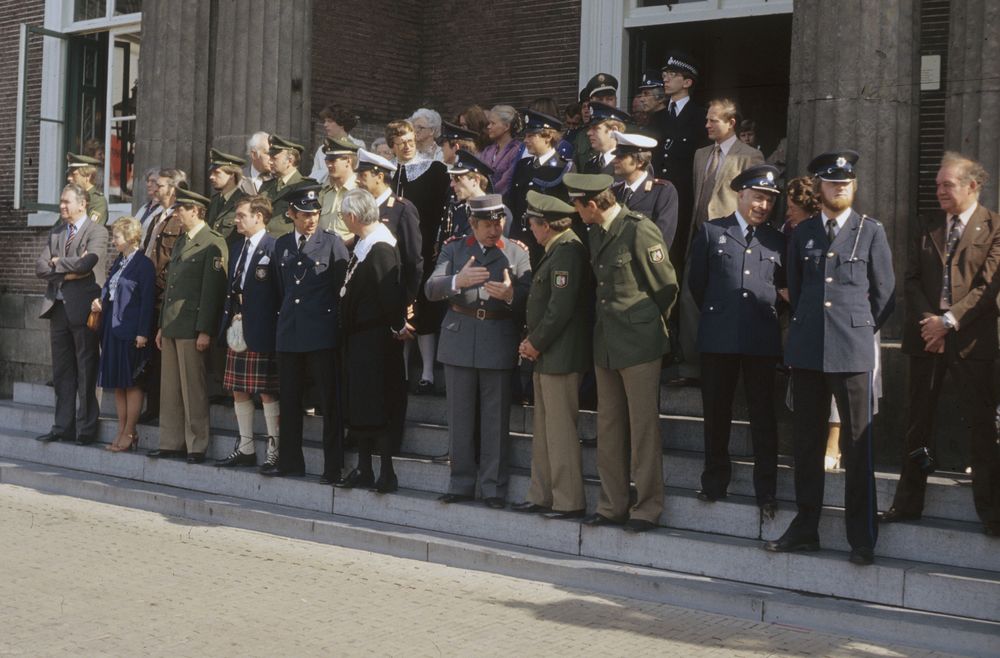 Groepsfoto van de gemeentepolitie Harderwijk met bur...