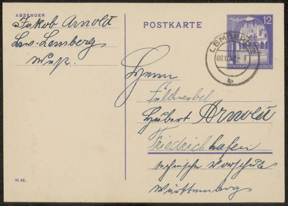 Briefkaart van Jakob Arnold aan Hubert 06-12-1942