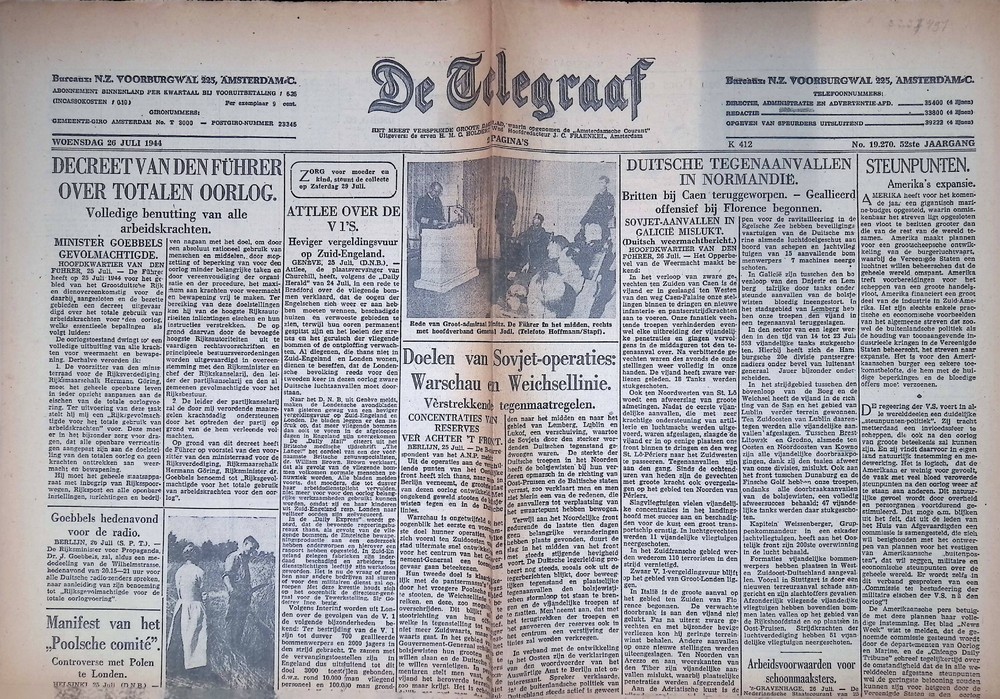 Brief in enveloppe. 3 september 1944. Aan den heer G...