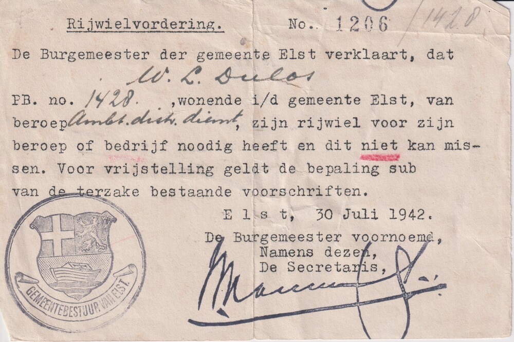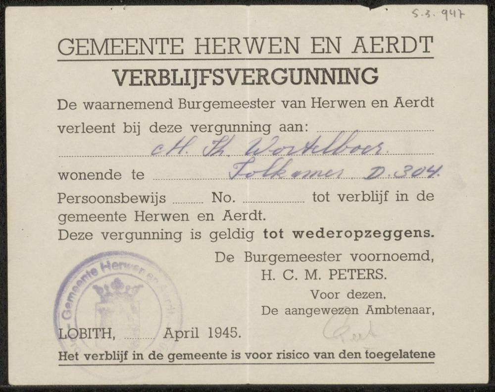 Brief in enveloppe. 1 november 1943. Aan den heer G....