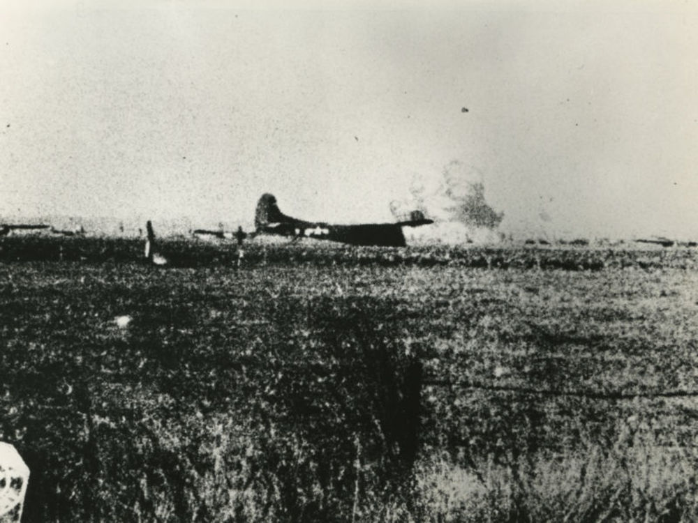 Foto van explosie van neerstorten C-47 Dakota op LZ ...