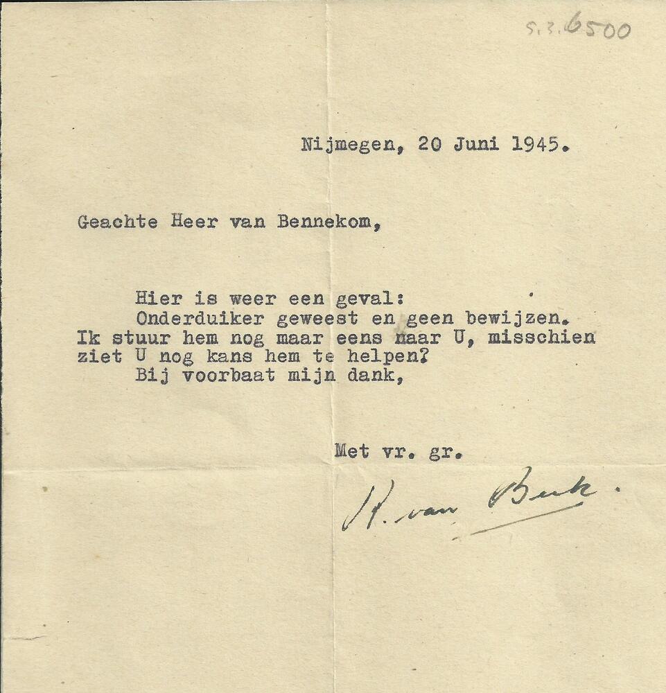 Brief: Brief van R. van Beek aan Dhr. Bennekom.