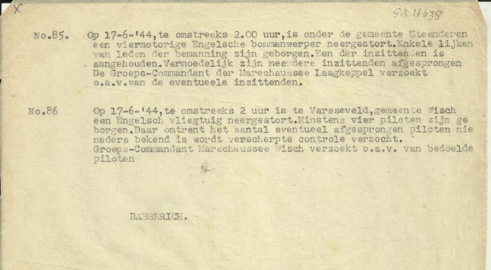 Alarmeringsbericht, 17 juni 1944, betreffende neerst...