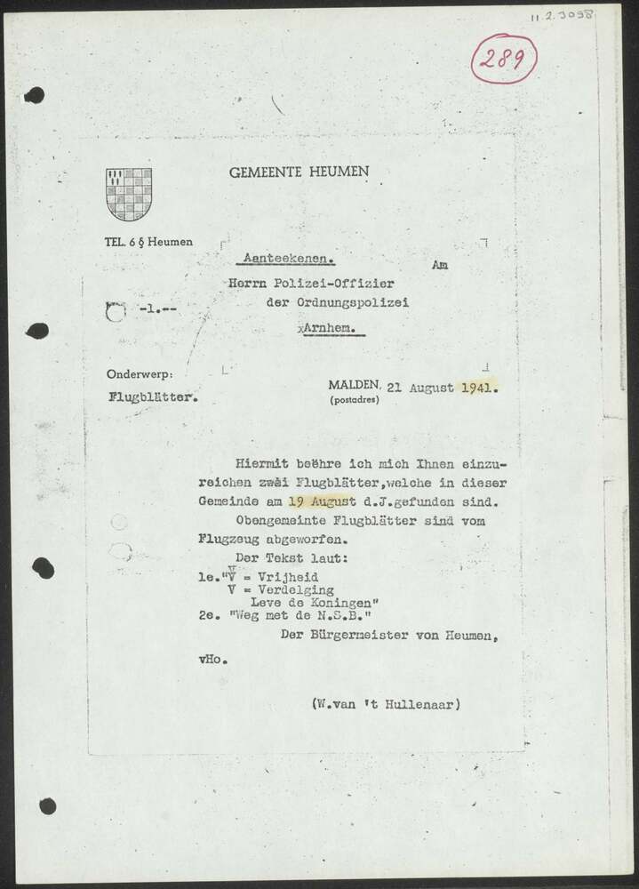 Brief van D.A. Hilten aan G.H.J.M. Peijnenburg over ...