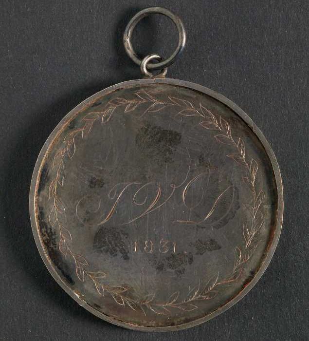 Sportmedaille met speerwerper en op keerzijde "Aange...
