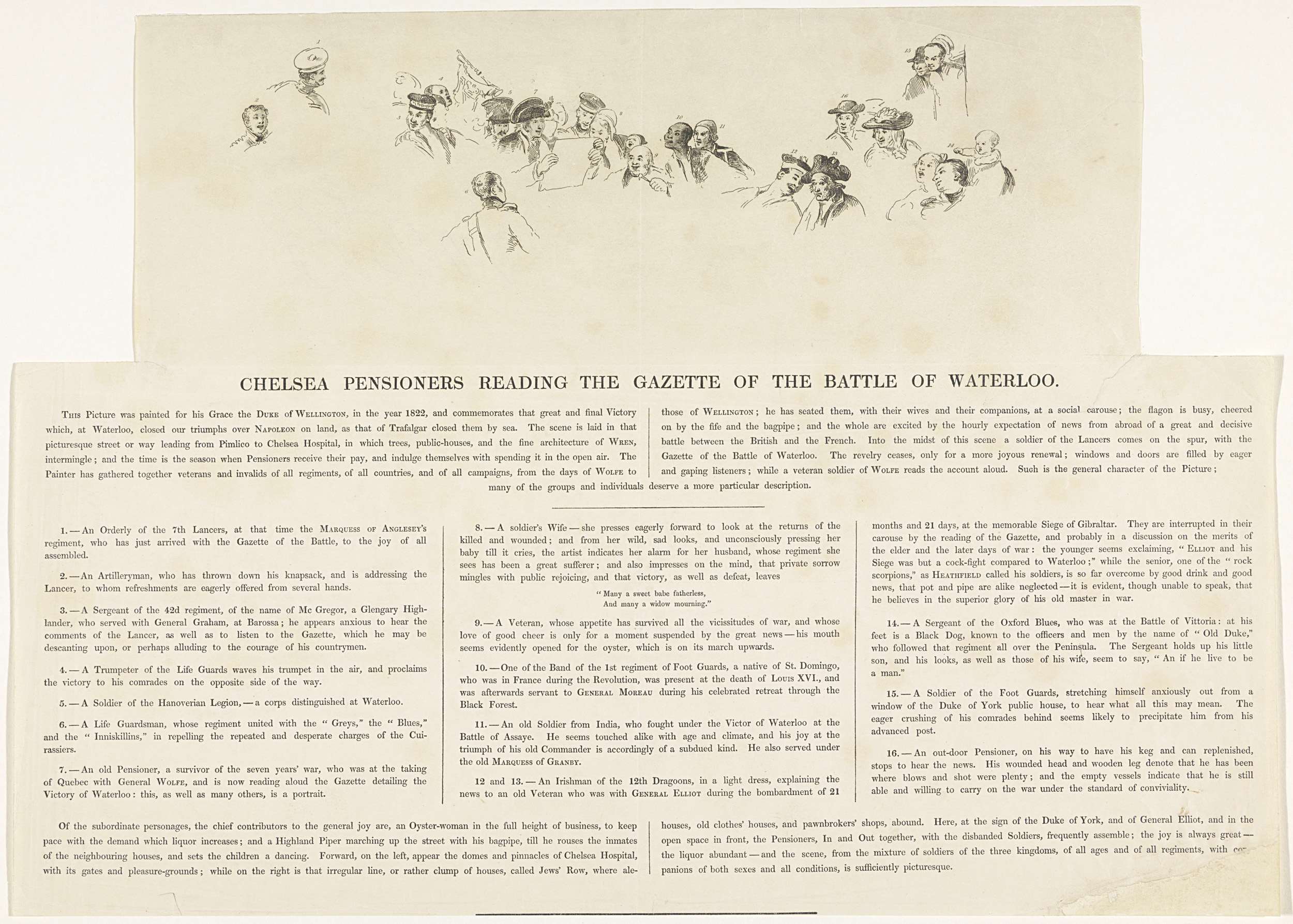 Sleutel voor de prent van de oudstrijders die lezen ...