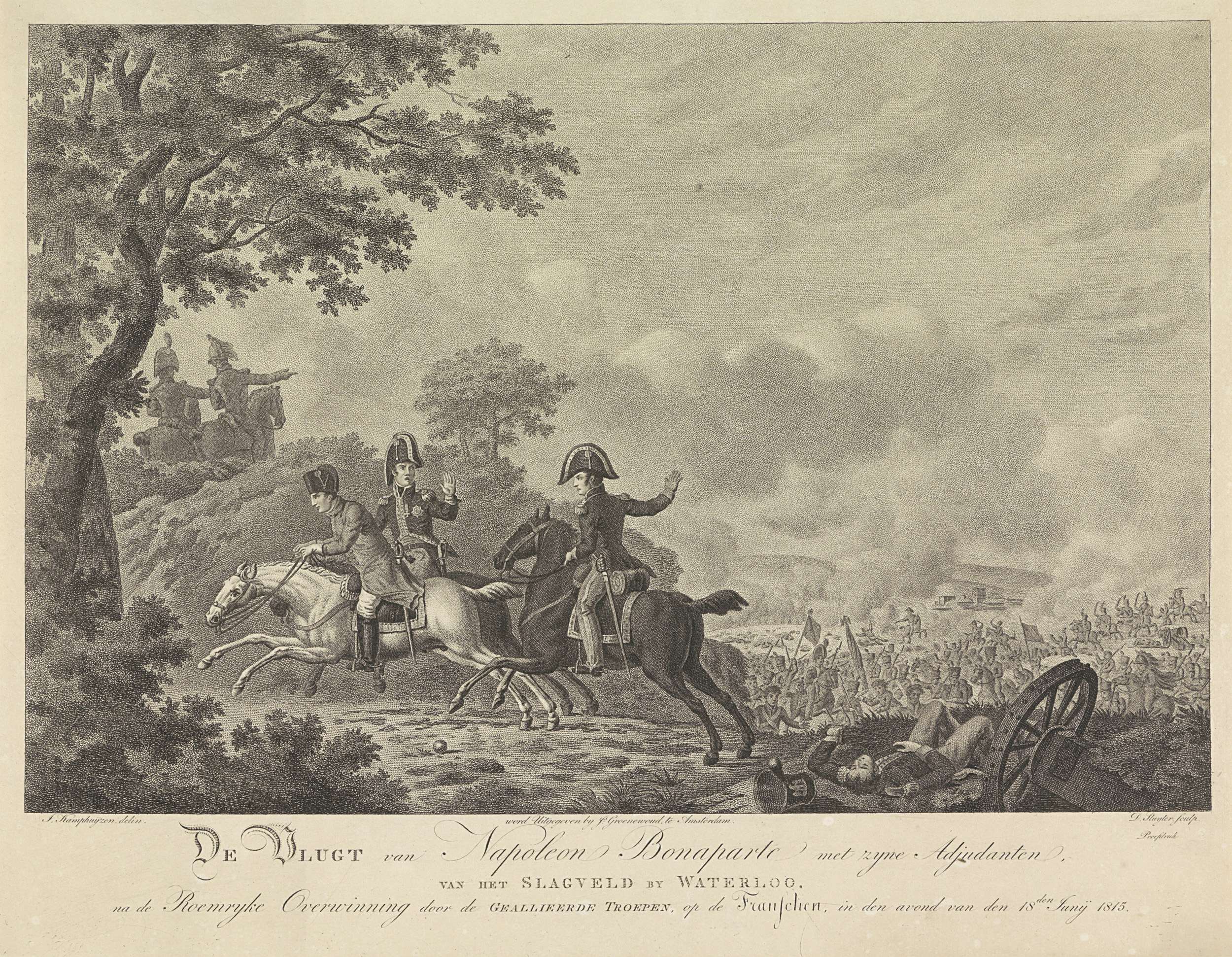 Napoleon vlucht van het slagveld van Waterloo, 1815