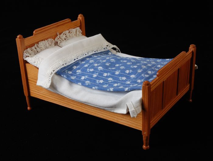 Grenenhouten miniatuur ledikant, tweepersoonsbed met...