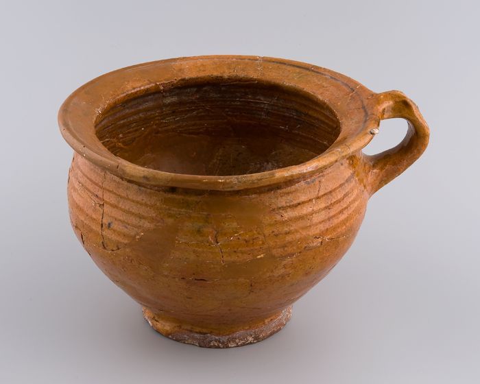 Aardewerk kamerpot, met gewelfde bodem, spaarzaam ge...