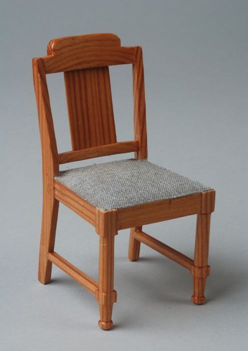 Grenenhouten miniatuur slaapkamerstoel met grijze be...