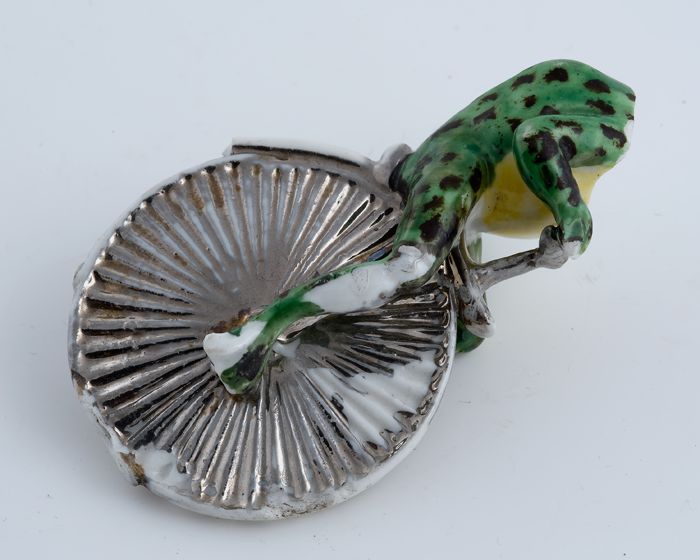 Fragment porseleinen kikker op vélocipède