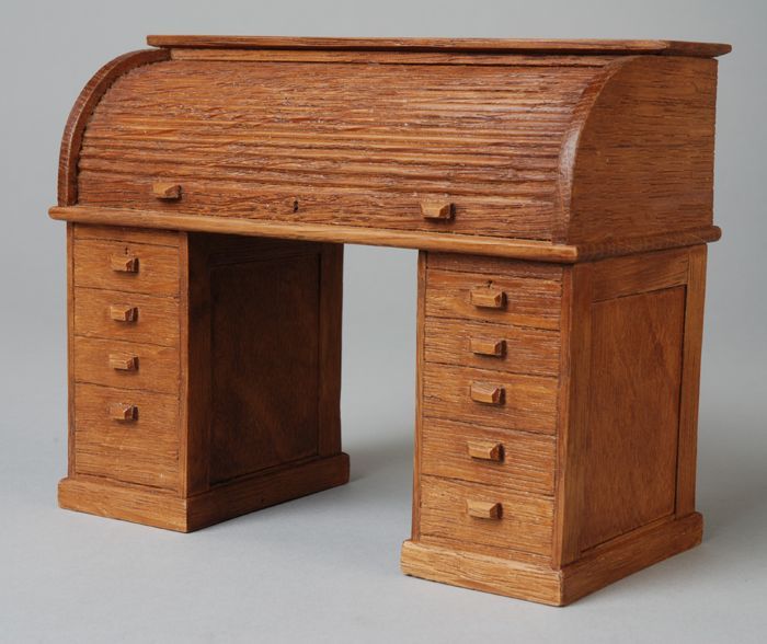 Eikenhouten miniatuur cilinderbureau