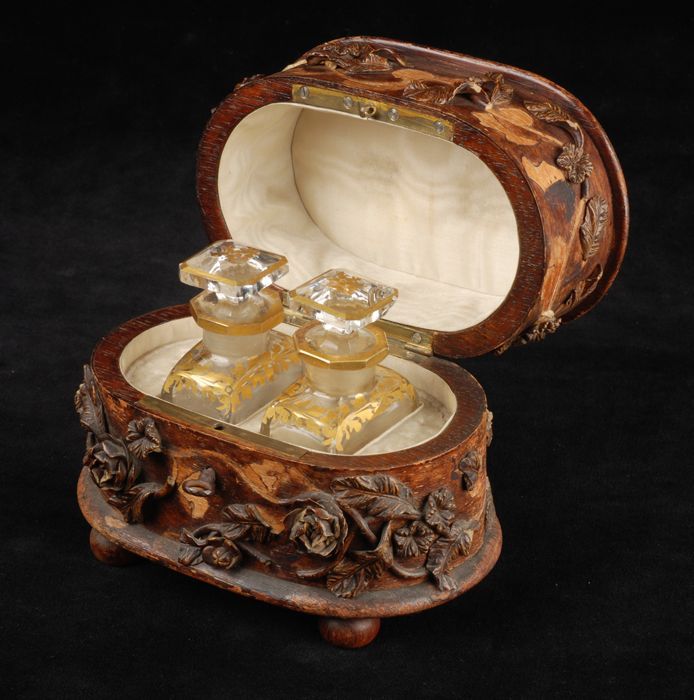 Houten foedraal, ovaal model voorzien van reliëf blo...
