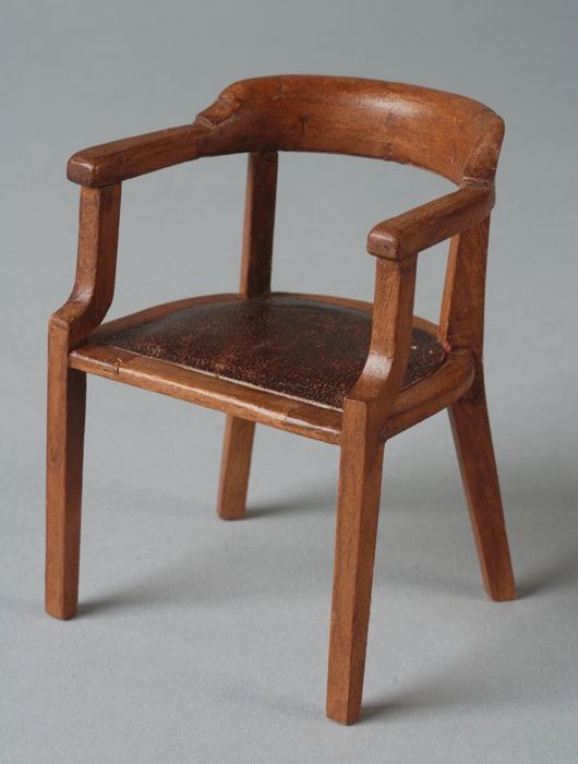 Houten miniatuur bureaustoel, met gebogen rugleuning...