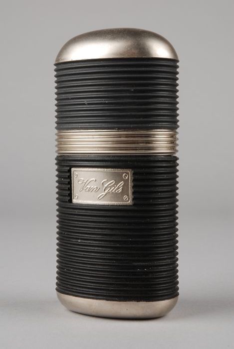Ovaal langwerpig parfumflesje met ribbels rondom, zw...
