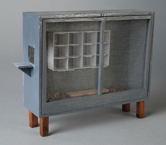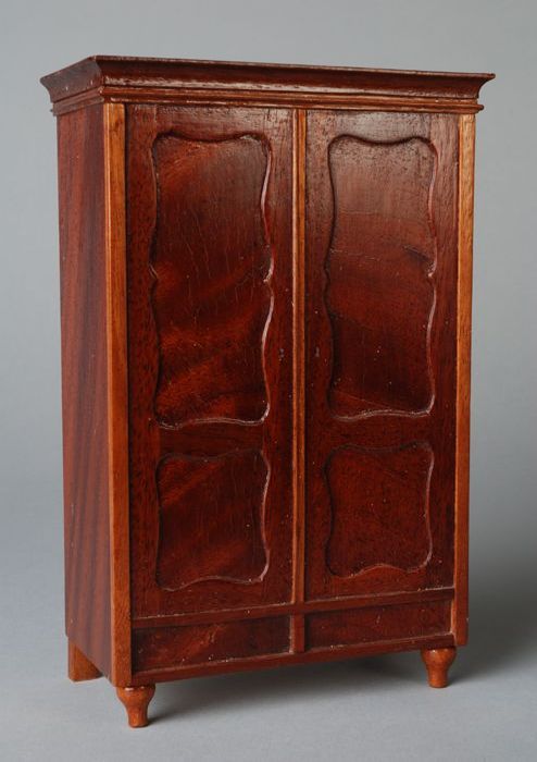 Mahoniehouten miniatuur kast, linnenkast met twee de...