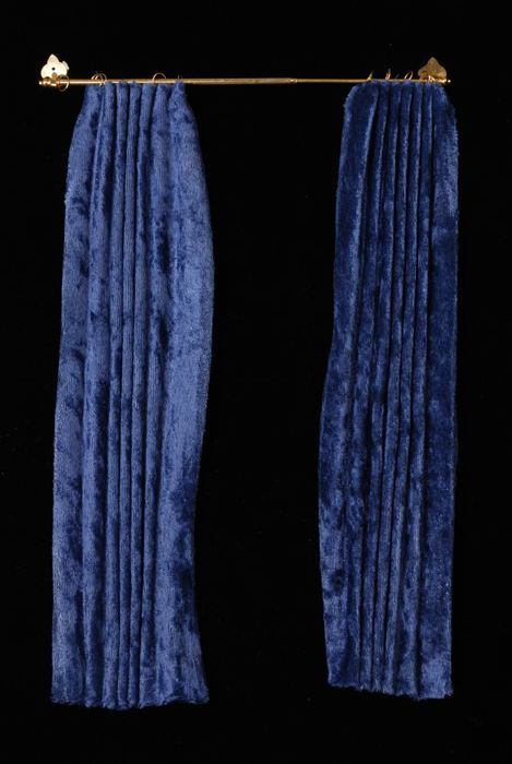 Paar donkerblauwe fluwelen geplooide miniatuur gordi...