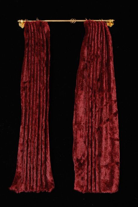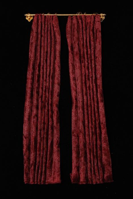Paar bordeaurode fluwelen geplooide miniatuur gordij...