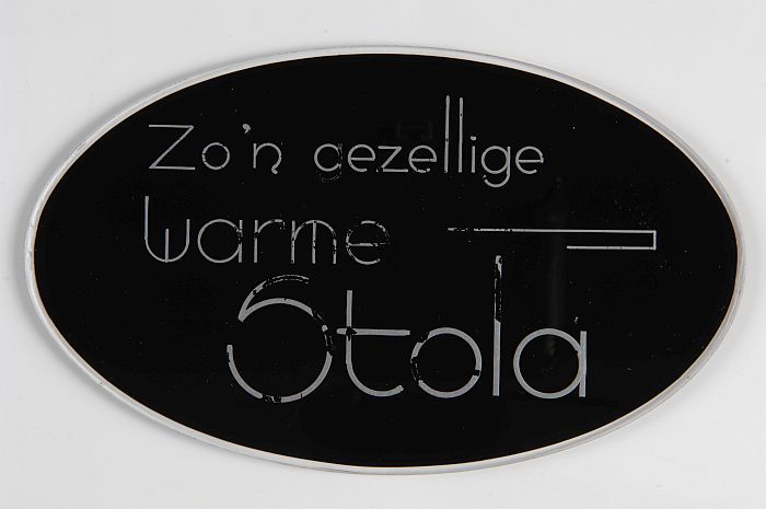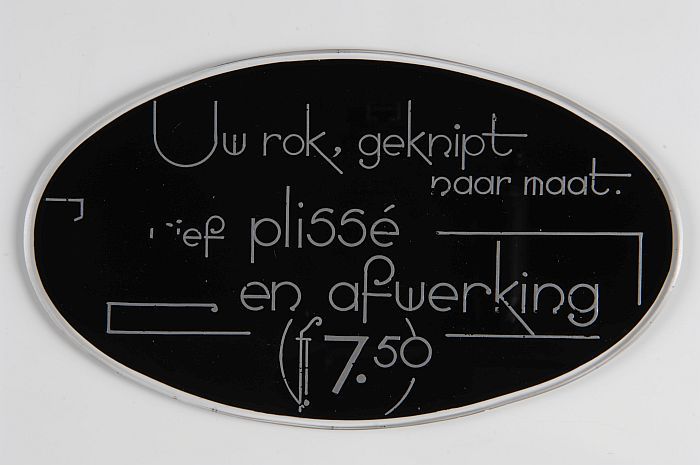 Ovaal etalagebord van glas, zwart met zilverkleurige...