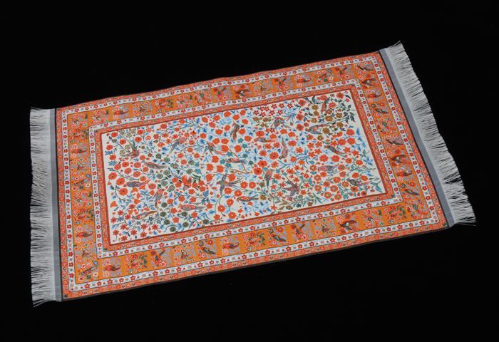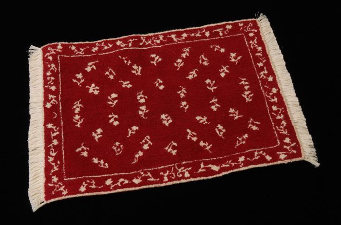 Miniatuur vloerkleed, ecrukleurig, met witte satijne...