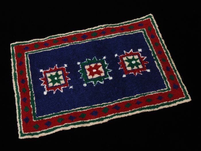 Miniatuur vloerkleed, donkerblauw met rode bies, geo...