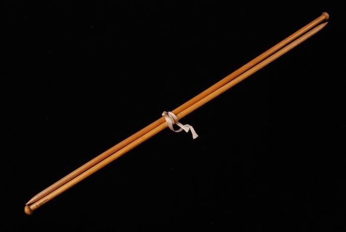 Paar dikke breinaalden van hout met knop