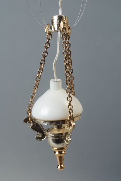 Miniatuur hanglamp, model olielamp, goudkleurige hou...