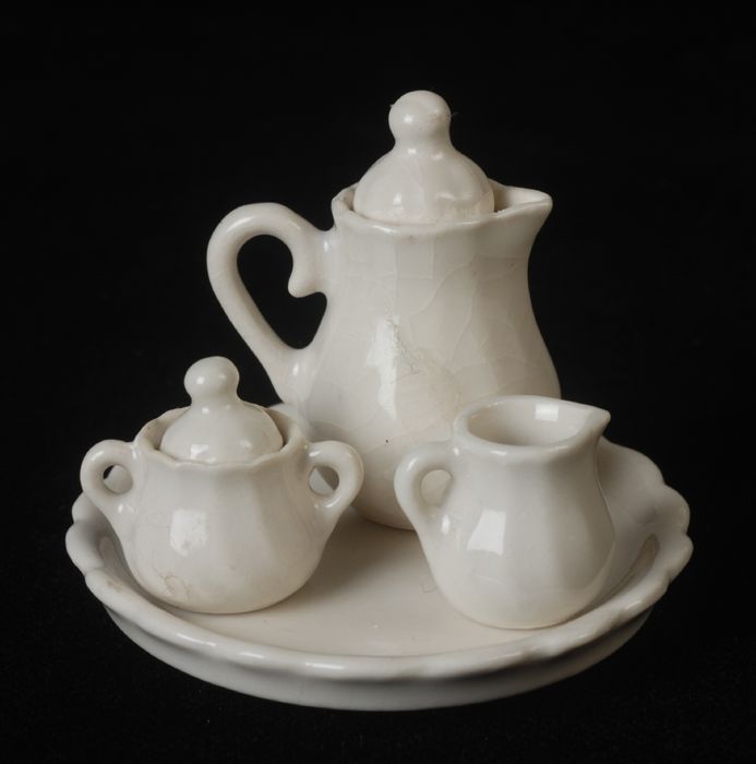 Twee zilverkleurige metalen miniatuur theeketels met...