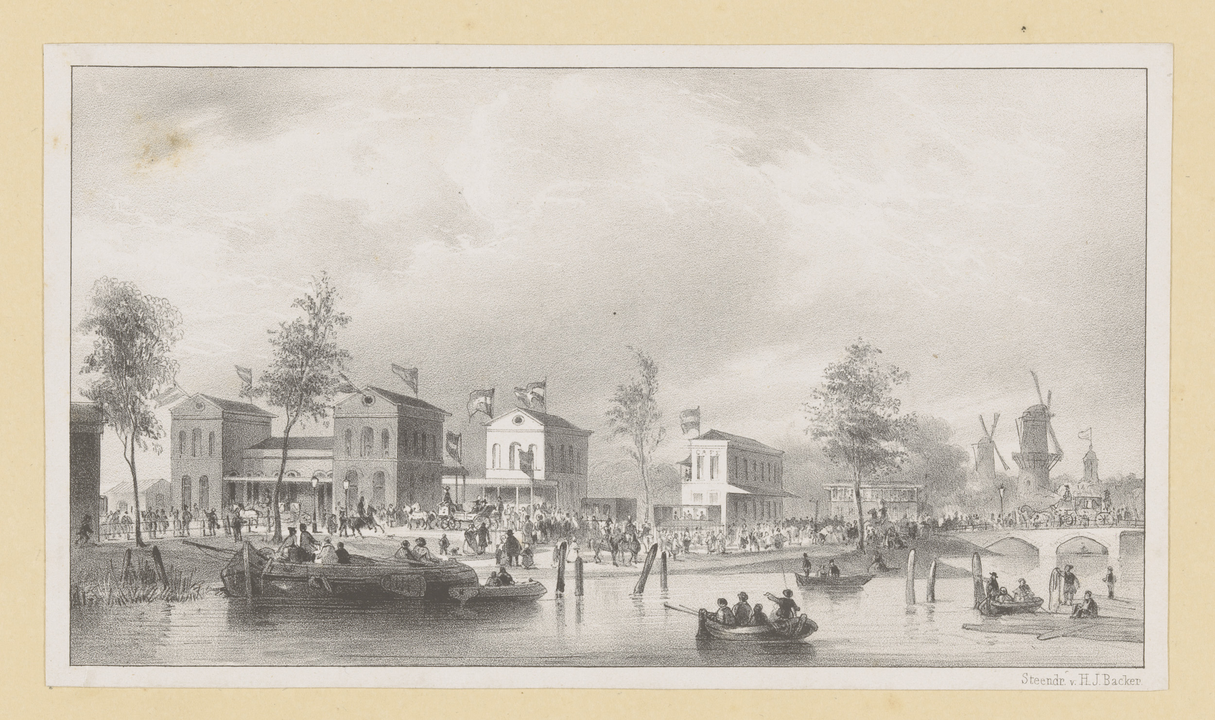 Stationsgebouwen van de Rijnspoorweg in Amsterdam