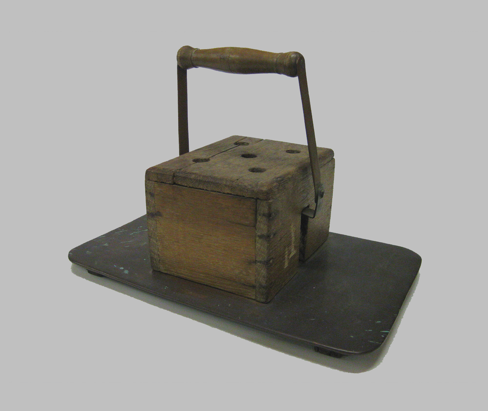 Rijtuigstoof van koper met houten overstoof